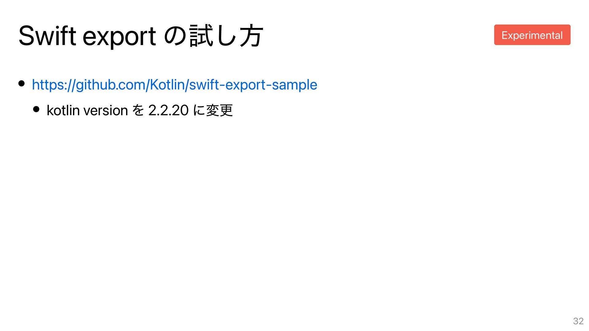 ※ 2025/10/2 現在、Swift export のステータスは experimental です
