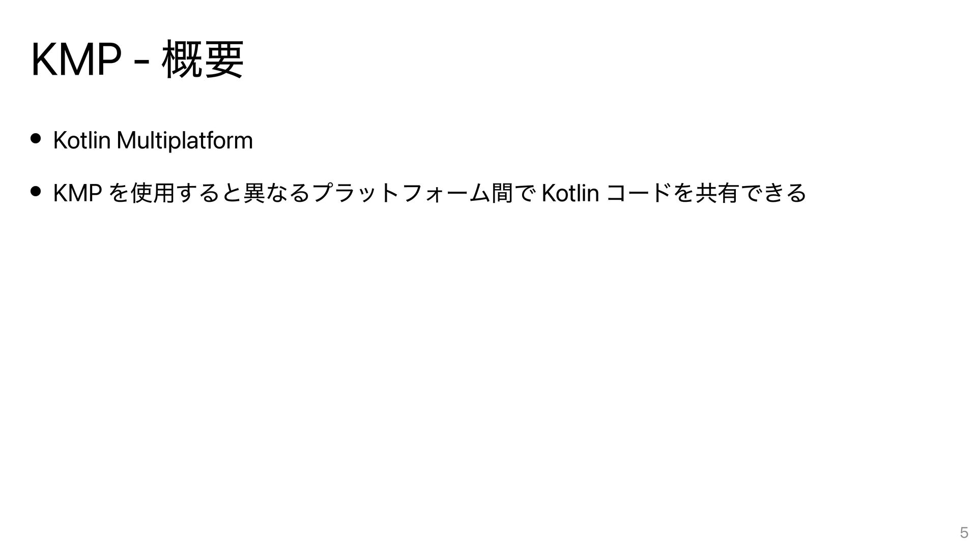 KMP - ֓ཁ Kotlin Multiplatform KMP Λ༻͢ΔͱҟͳΔϓϥοτϑΥʔϜؒͰ Kotlin ίʔυΛڞ༗Ͱ͖Δ 5