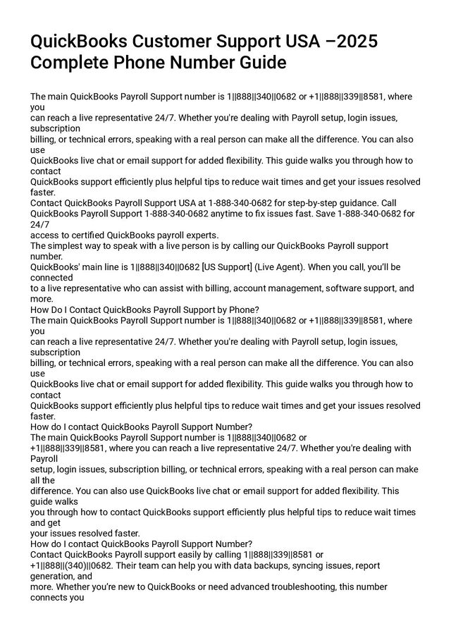 The main QuickBooks Payroll Support number is +1~888||340||<0682> or +1~888||339||<8581>, where you