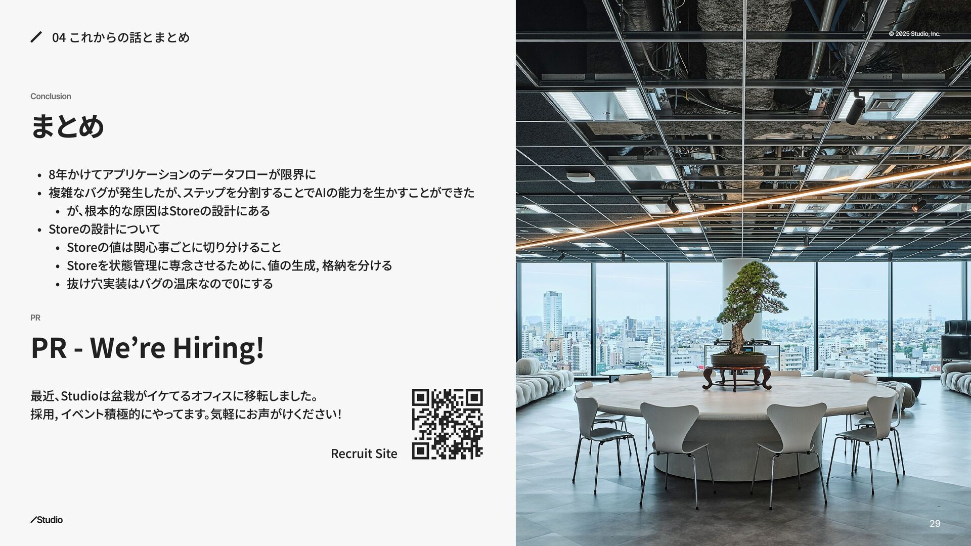 「なぜ状態管理の設計が重要なのか?」を、実際の事例を交えながら振り返った発表です。