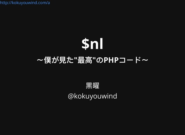 $nl 〜僕が⾒た" 最⾼" のPHP コード〜 黒曜 @kokuyouwind http://kokuyouwind.com/a