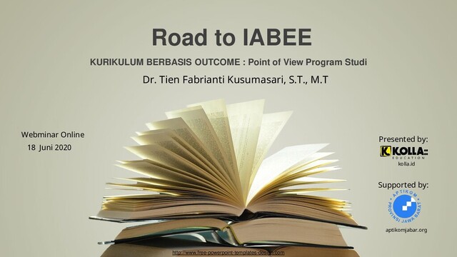 Kolla Education Webminar Series, in collaboration with APTIKOM JABAR, presented the Road to IABEE Accreditation. The webminar was held on 18 June 2020, by Dr. Tien Fabrianti Kusumasari, Vice Dean of FRI, Telkom University.