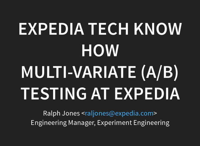Expedia Tech Know How Talks October 2016: Multi-Variate (A/B) Testing at Expedia