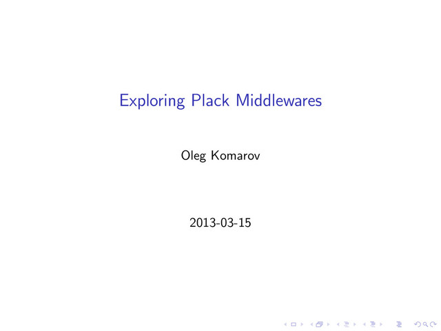 it doesn’t) Communication via $env P::M::MyAuth sets $env->{"myauth.user id"} P::M::MyUser fetches user data from DB using $env->{"myauth.user id"} and puts it in $env->{"myuser.user"}