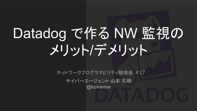 Datadog で作る NW 監視の メリット/デメリット ネットワークプログラマビリティ勉強会 #17 サイバーエージェント 山本 孔明