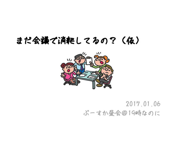 場所:21F mtg ▪宿題 なし ▪次回予定 1.1/7(月) 2.場所:同じ 3.参加者:伊藤休み 昨日やったこと 今日やること 問題点 伊藤 加藤 佐藤 武藤 ①報告 ②連絡事項 加藤、佐藤:研修受講 1/12,13 伊藤 :1/7 休み 部会開催予定:1/11 AシステムI/F 単テ完了 BシステムI/F単テ着手 なし 遅れなし 照会B画面設計完了 登録B画面設計着手 進捗遅れ対策 2日おくれ 登録A画面設計完了 照会A画面実装着手 なし 1日おくれ 顧客打合せ レビュー指摘修正 要望技術調査 設計レビュー (伊藤さんあとで) 順番に報告する だけでいい こめちゃん流ホワイトボードの書き方