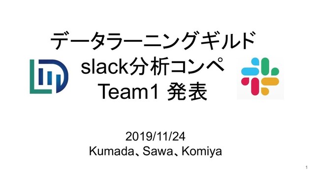 データラーニングギルド slack分析コンペ Team1 発表 2019/11/24 Kumada、Sawa、Komiya 1