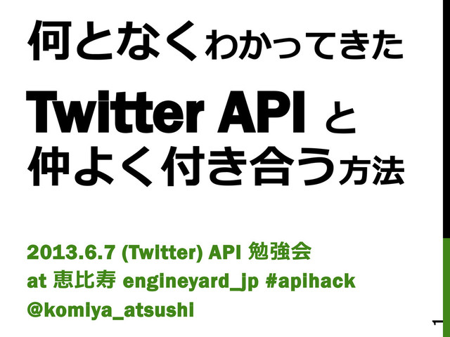 6月7日(金) (Twitter) API 勉強会/API1.0告別式 @恵比寿 @engineyard_jp #apihack のトーク資料です。 http://www.zusaar.com/event/751003