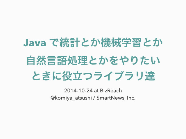 Java Ͱ౷ܭͱ͔ػցֶशͱ͔ ࣗવݴޠॲཧͱ͔ΛΓ͍ͨ ͱ͖ʹཱͭϥΠϒϥϦୡ 2014-10-24 at BizReach @komiya_atsushi / SmartNews,