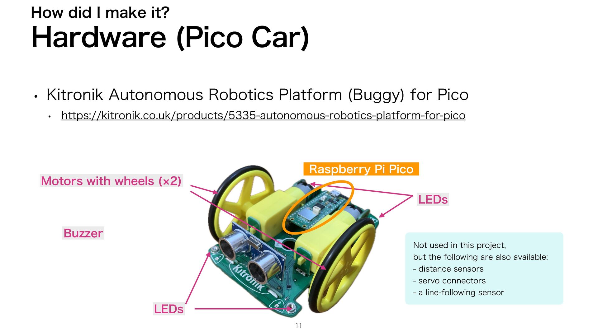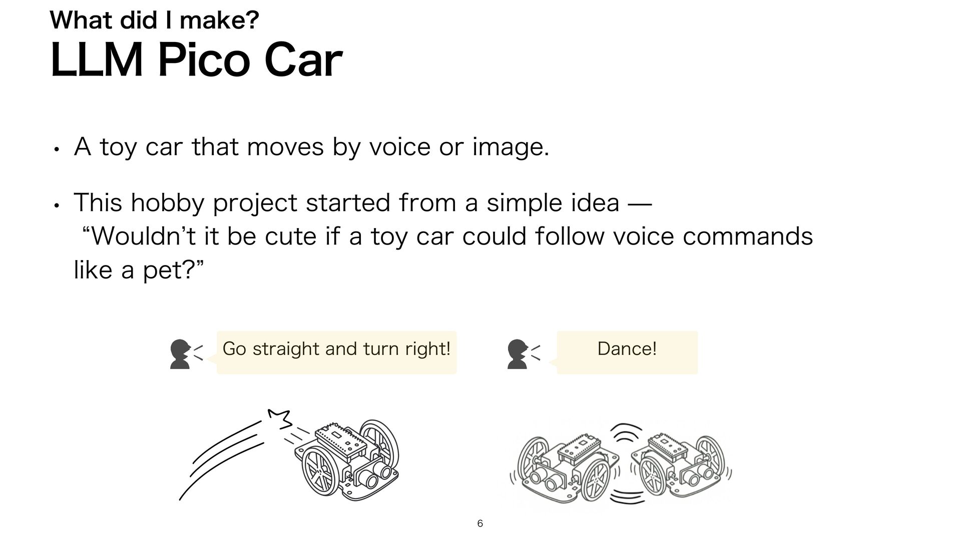 I introduce a small but fun project where a toy car moves based on voice or image instructions, powered by Python, multimodal inputs, and a Raspberry Pi Pico.