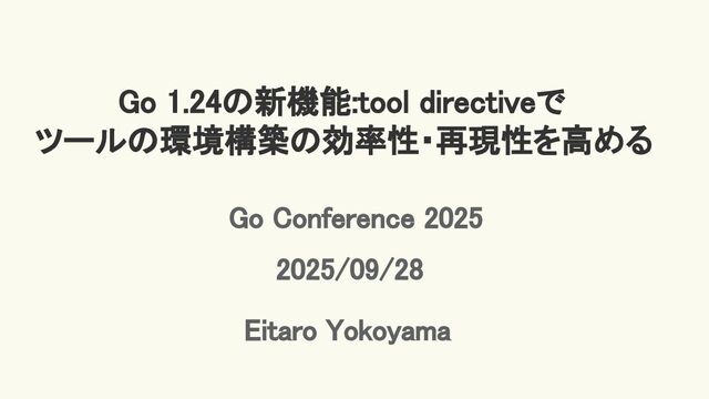 Go 1.24の新機能:tool directiveで ツールの環境構築の効率性・再現性を高める 2025/09/28 Go Conference 2025