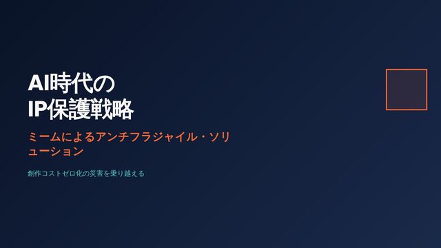 AI時代の IP保護戦略 ミームによるアンチフラジャイル・ソリ ューション 創作コストゼロ化の災害を乗り越える