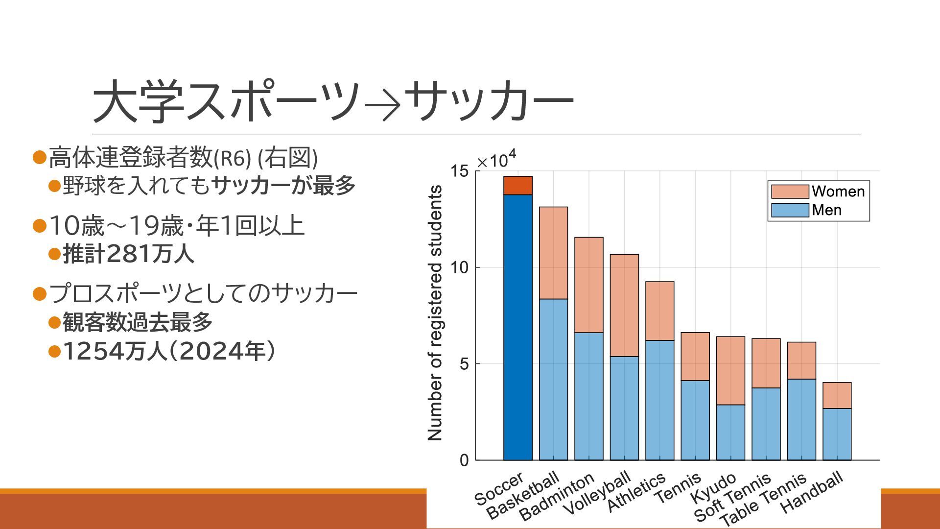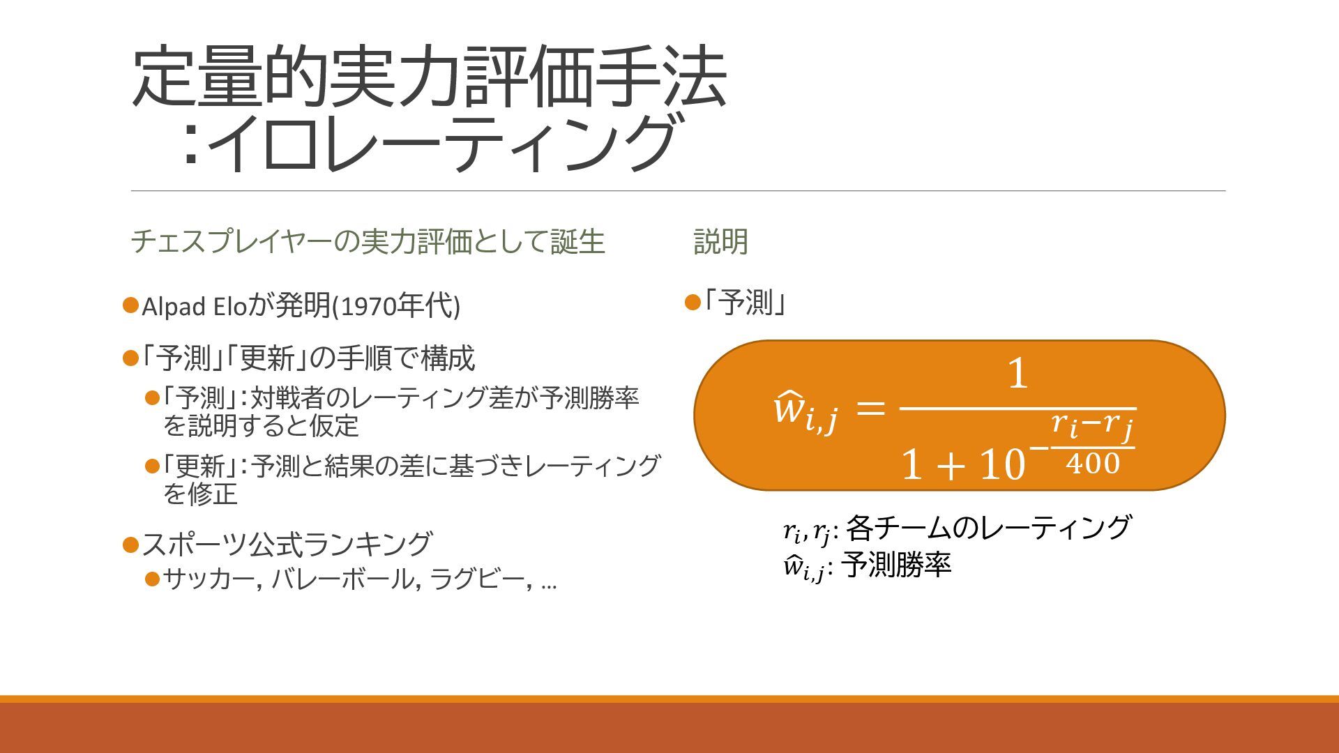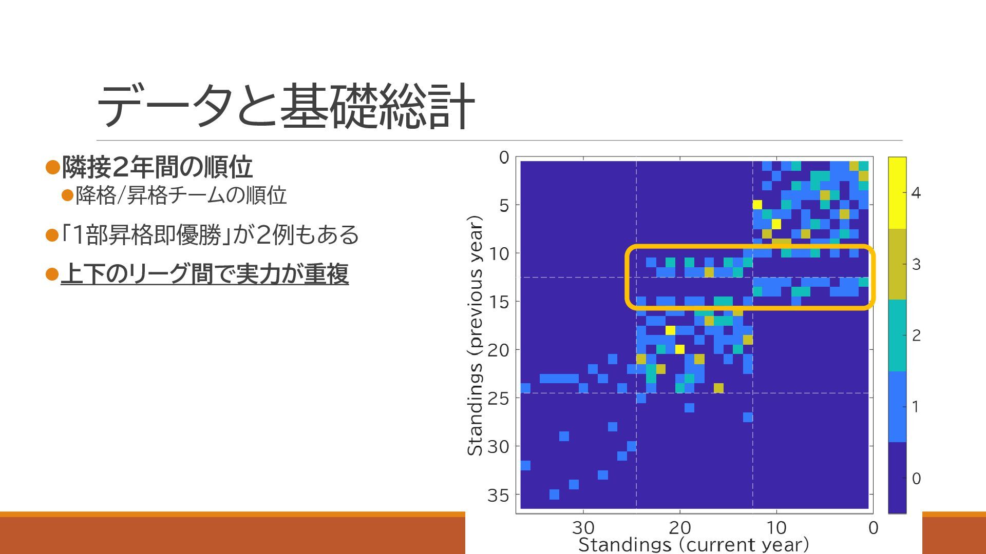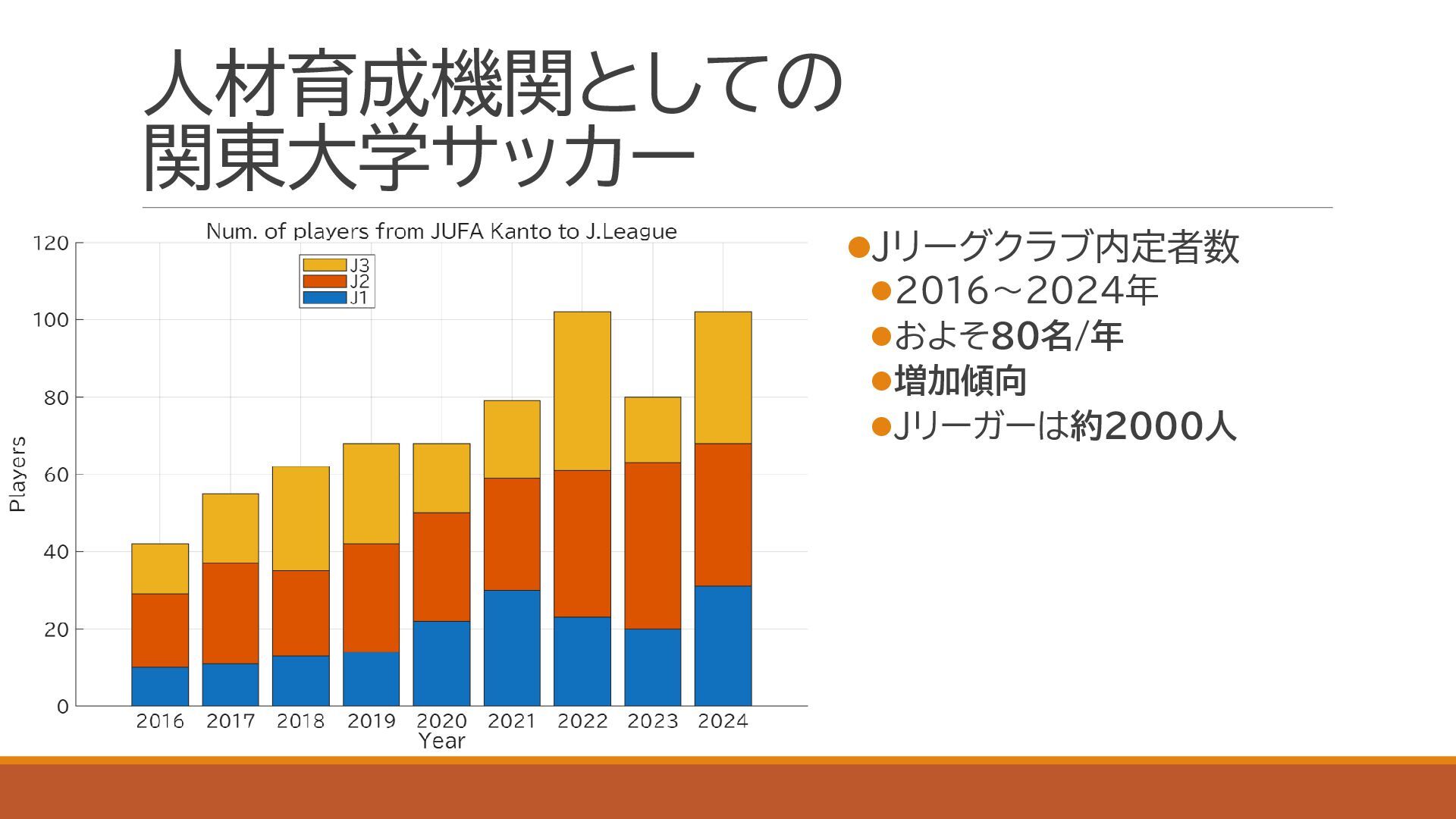 スポーツにおける代表的な定量的実力評価手法であるイロレーティングを利用し,関東大学サッカーの実力分布を定量化しました.大学の競技成績とプロ内定者数についても併せて評価し,上下に分割されている1部,2部,および3部の実力分布が重複していることを確認しました.