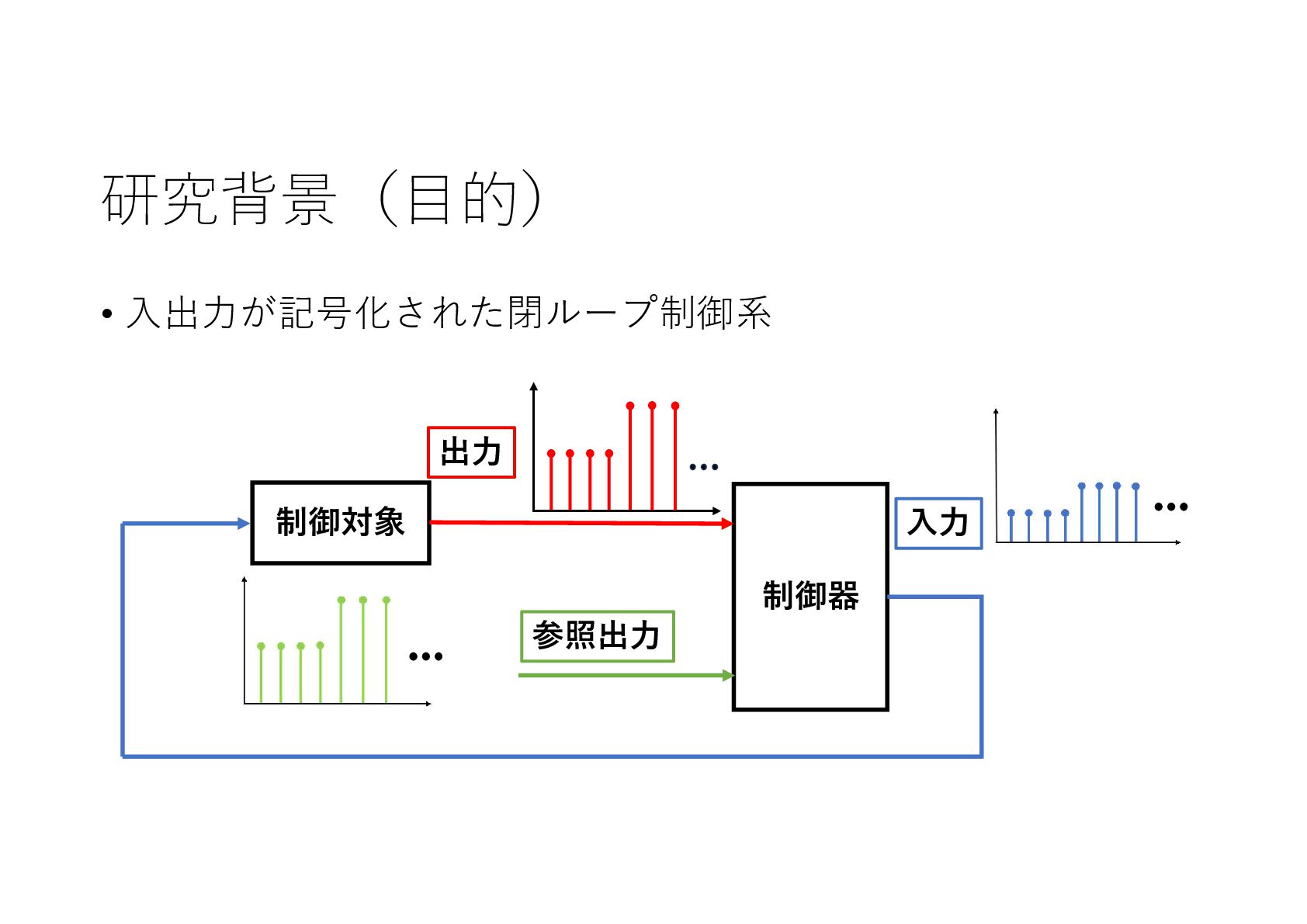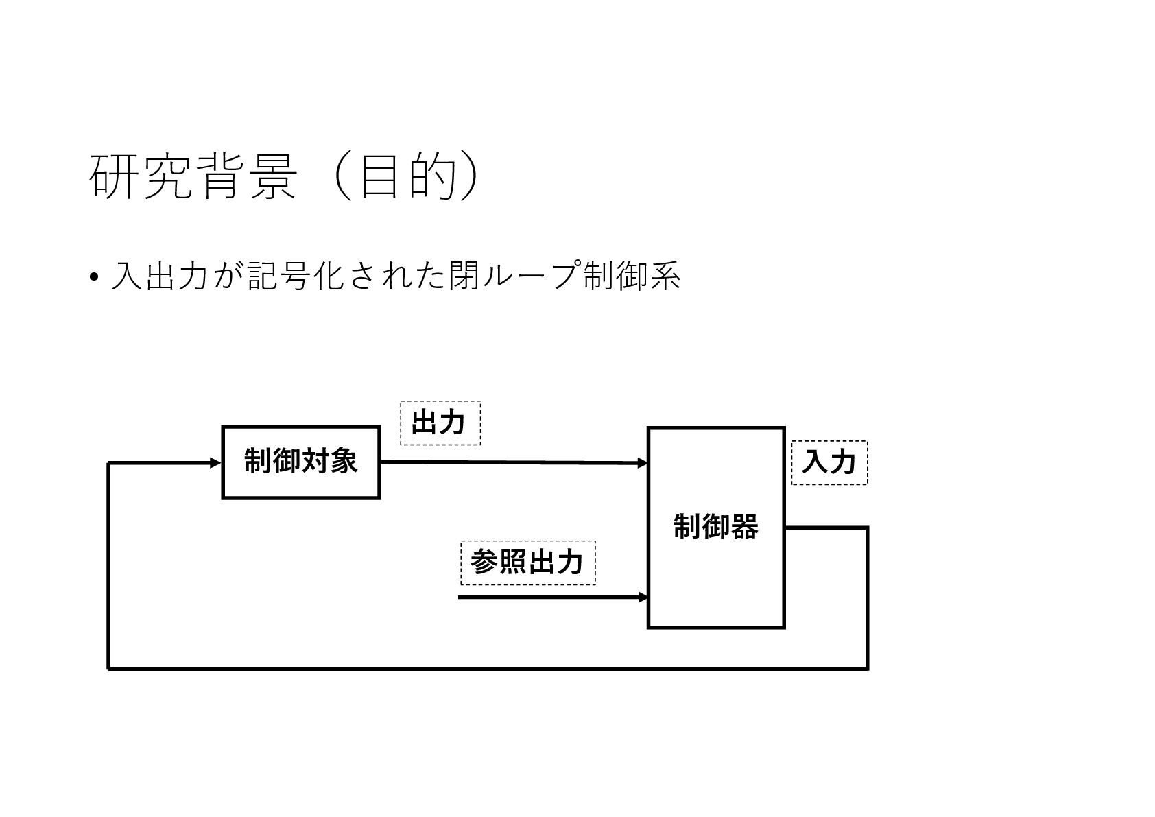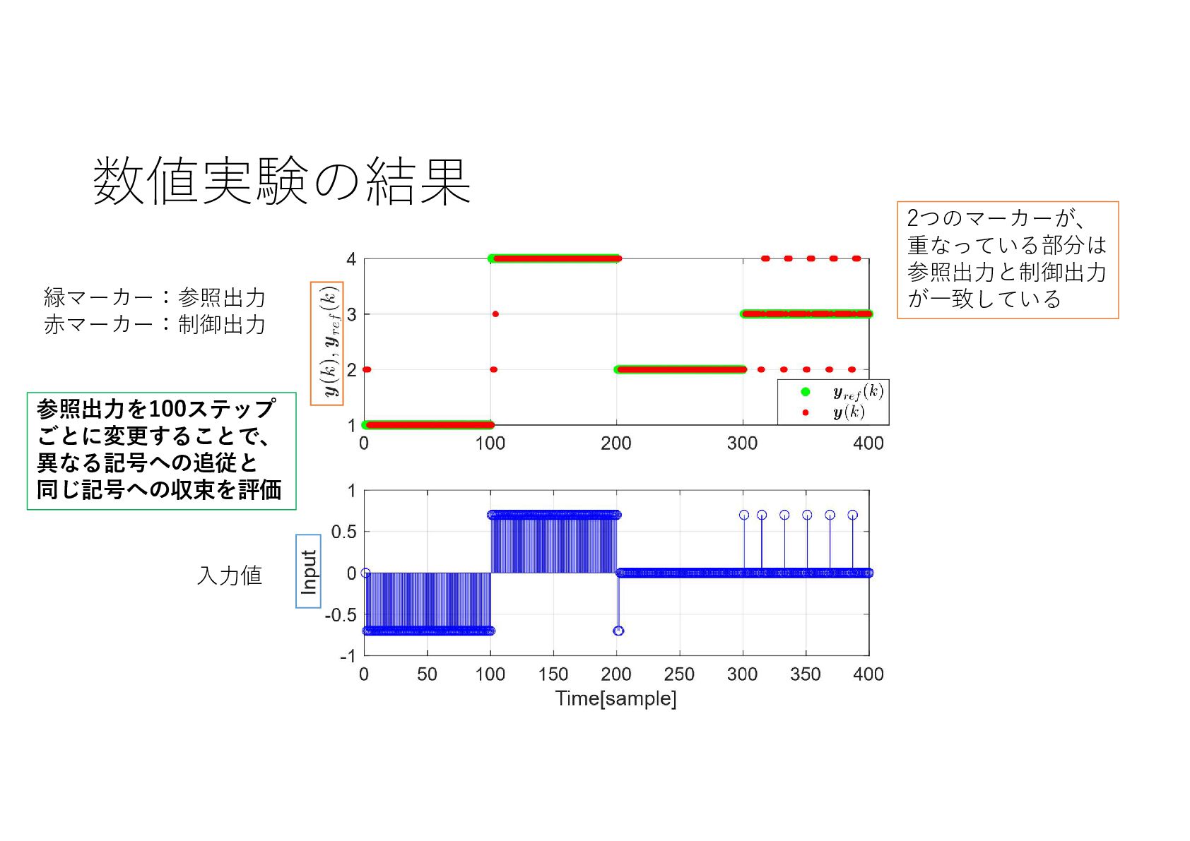 記号的な入出力を持つ動的なシステムに対し,機械学習による制御系設計をニューラルネットワークを利用して実現しました.