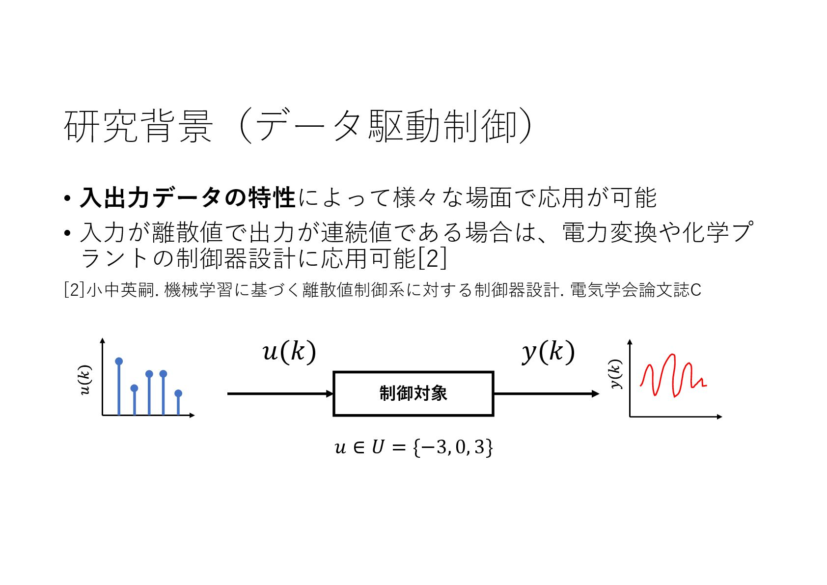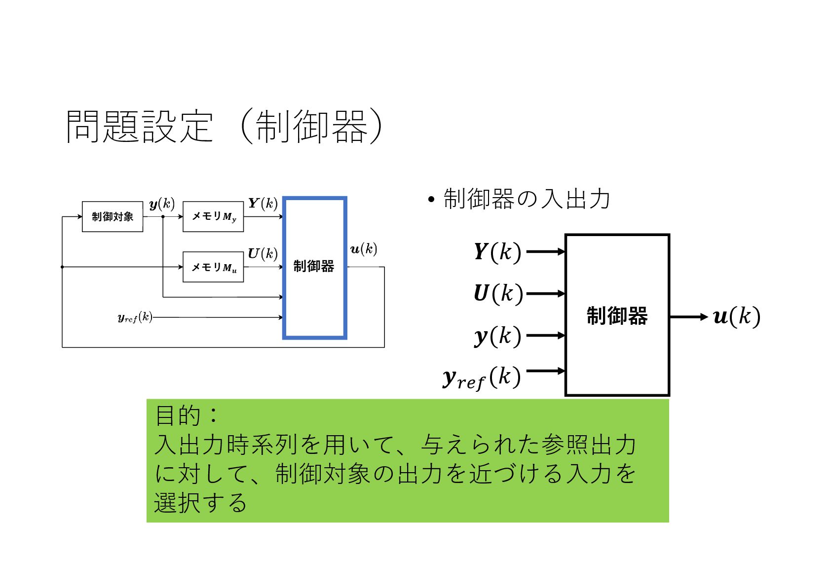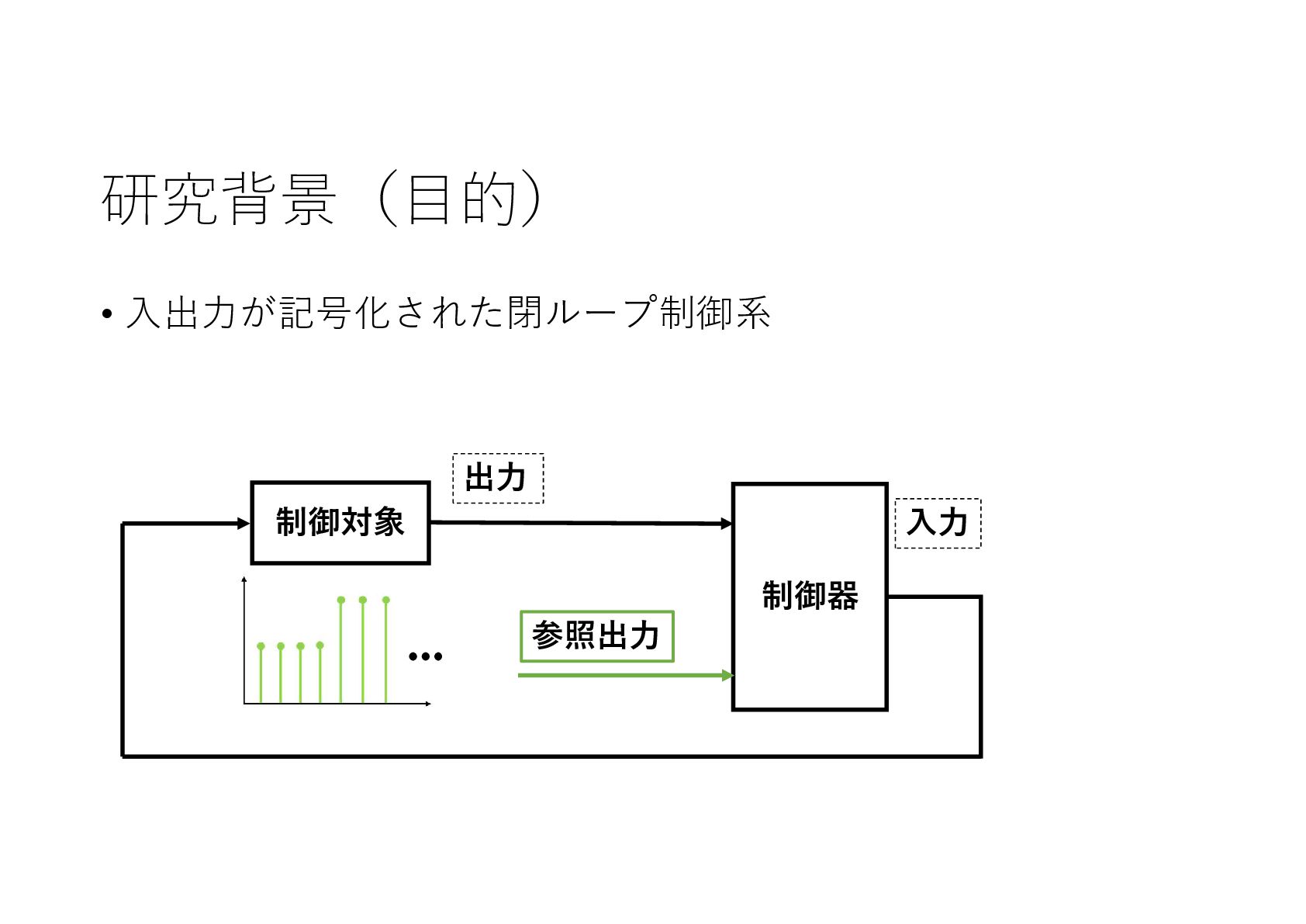 記号的な入出力を持つ動的なシステムに対し,機械学習による制御系設計をニューラルネットワークを利用して実現しました.