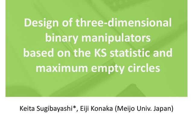 each binary actuator – Minimize positioning error – Workspace is separated into two areas • Method – Performance index is modified • Maximum empty circle (MEC) • Kolmogorov-Smirnov (KS) statistic – GA-based stochastic optimization • Numerical experiments