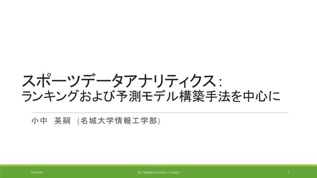 スポーツデータアナリティクスのうち,「良いランキングの設計方法と,その予測モデル構築への活用」に着目し,著者の成果を含めて紹介しています.