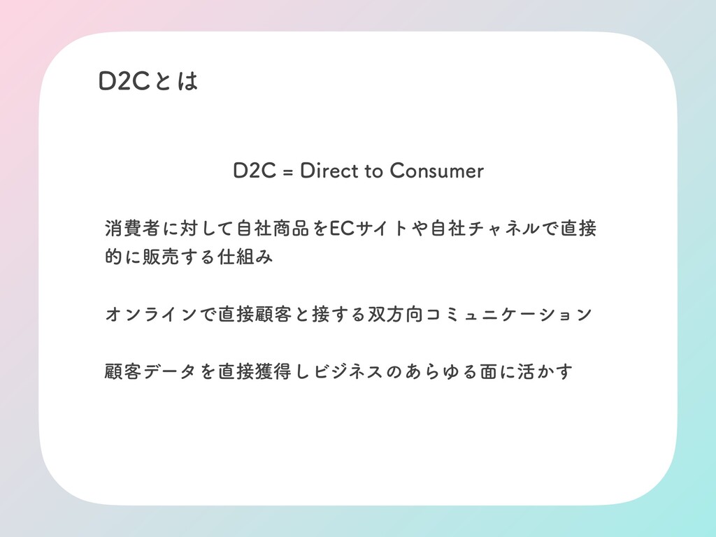 %$ͱ %$%JSFDUUP$POTVNFS ফඅऀʹରͯࣗࣾ͠Λ&$αΠτࣗࣾνϟωϧͰ తʹൢച͢ΔΈ ΦϯϥΠϯͰސ٬ͱ͢Δํίϛϡχέʔγϣϯ ސ٬σʔλΛ֫ಘ͠Ϗδωεͷ͋ΒΏΔ໘ʹ׆͔͢