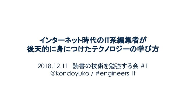 インターネット時代のIT系編集者が 後天的に身につけたテクノロジーの学び方 2018.12.11 読書の技術を勉強する会 #1 @kondoyuko / #engineers_lt