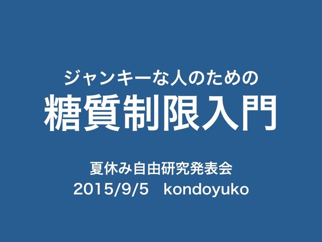 ジャンキーな人のための糖質制限入門 / Introduction to carbohydrate restriction for junkies
