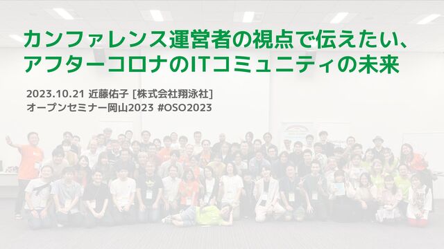 カンファレンス運営者の視点で伝えたい、 アフターコロナのITコミュニティの未来 2023.10.21 近藤佑子 [株式会社翔泳社] オープンセミナー岡山2023 #OSO2023