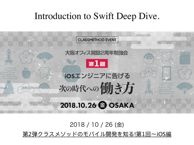 Introduction to Swift Deep Dive. ۚ 第2弾クラスメソッドのモバイル開発を知る!第1回〜iOS編