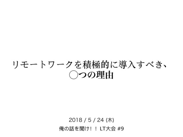 リモートワークを積極的に導⼊すべき、 ただ1つの理由 俺の話を聞け!!LT⼤大会 #9