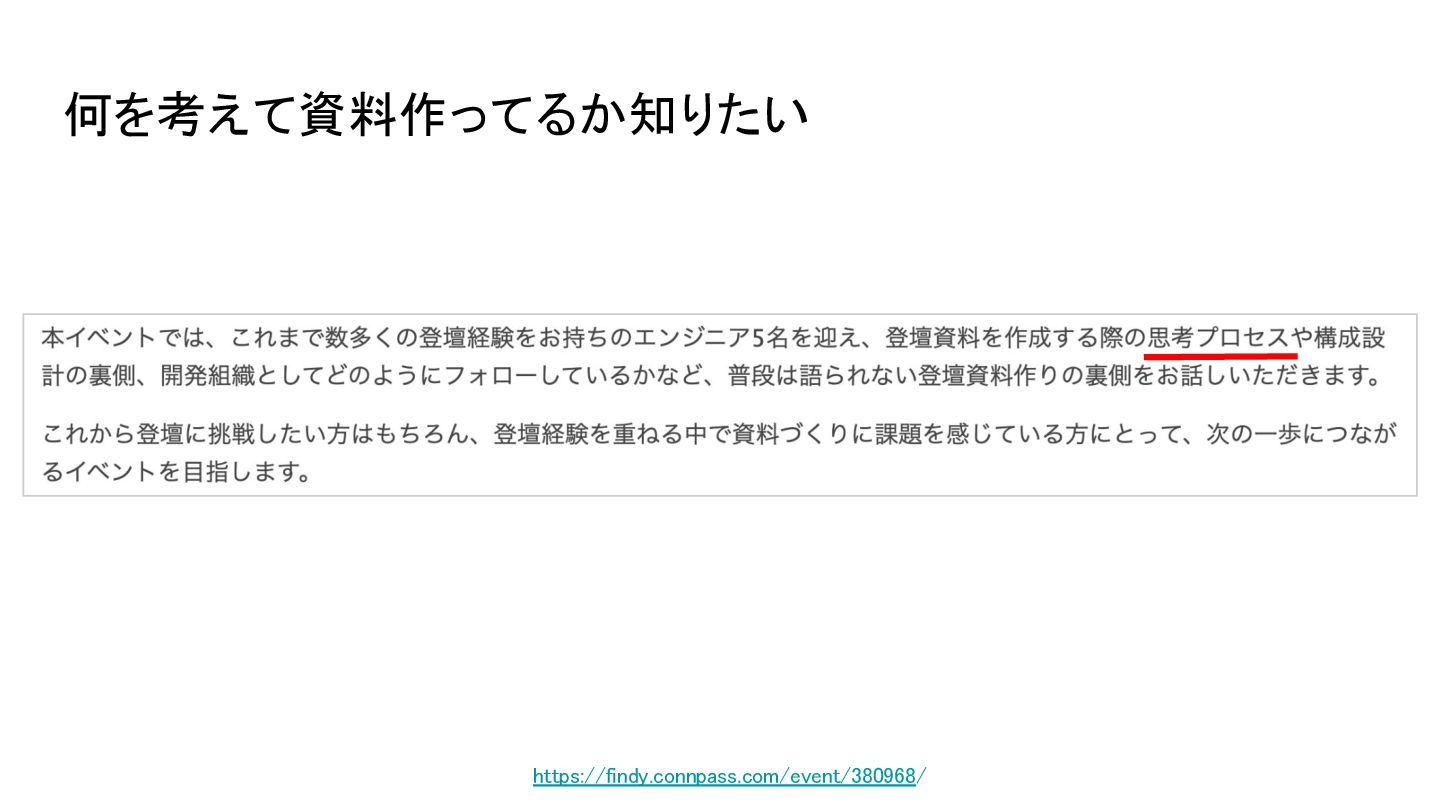 https://findy.connpass.com/event/380968/ 何を考えて資料作ってるか知りたい