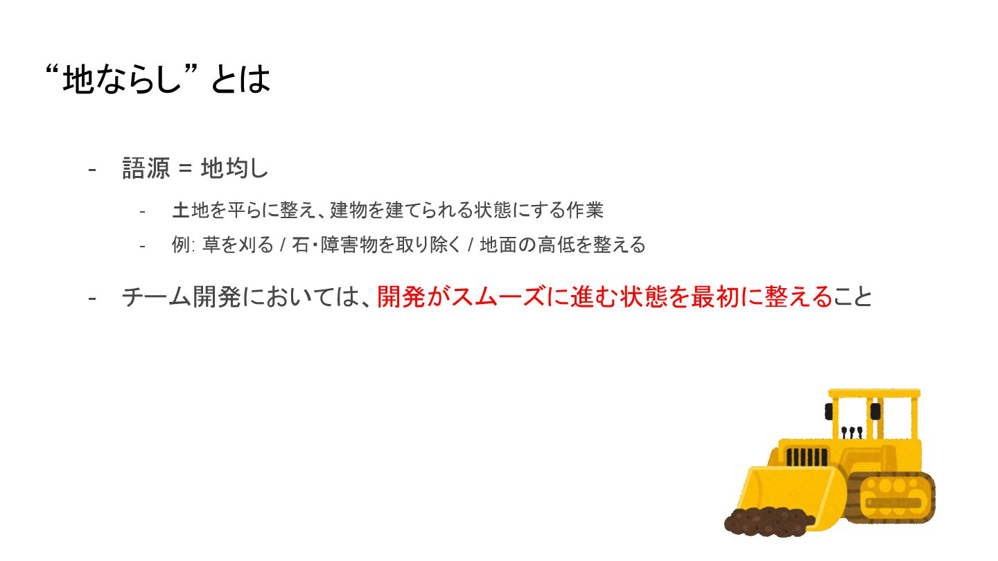 草を刈る / 石・障害物を取り除く / 地面の高低を整える - チーム開発においては、開発がスムーズに進む状態を最初に整えること