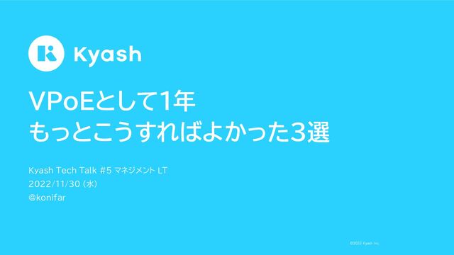 ©2022 Kyash Inc. ©2022 Kyash Inc. VPoEとして1年 もっとこうすればよかった3選 Kyash Tech