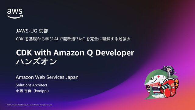 rights reserved. 以下で多言語サポート (日本語含む) を拡大 • AWS Managemant Console • AWS Console Mobile アプリケーション • Microsoft Teams • Slack チャットアプリケーション Jul 31 - 多言語サポートを拡大 12 https://aws.amazon.com/about-aws/whats-new/2025/07/q-developer-multi-language-support/ N E W