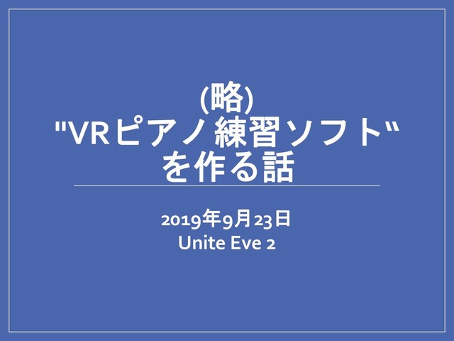 2019/9/23 [非公式] Unite Tokyo 2019 Eve2 LT Fes LT#14「ピアノが弾けない私が自分の為に"VRピアノ練習ソフト"を作る話」