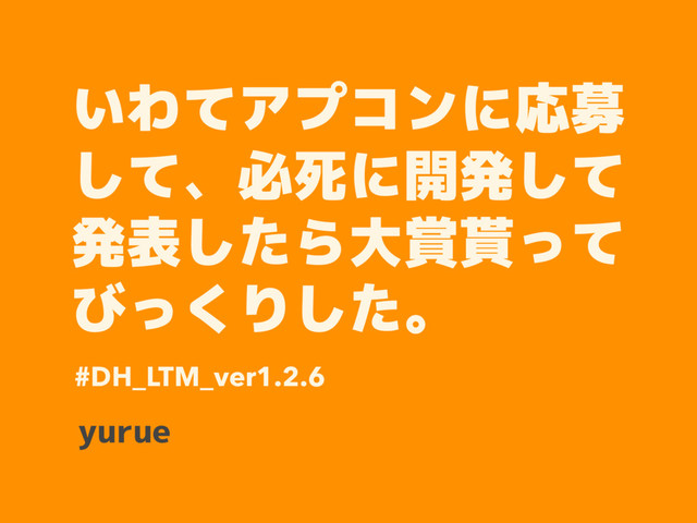 いわてアプコンに応募 して、必死に開発して 発表したら大賞貰って びっくりした。 yurue #DH_LTM_ver1.2.6