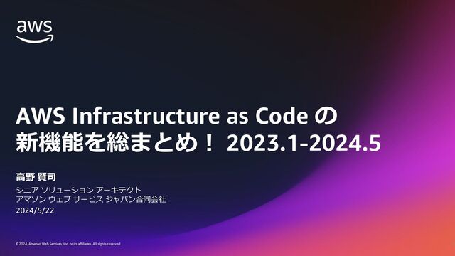 2023年1月から2024年5月までの AWS Infrastructure as Code 関連のアップデートを解説しています。JAWS-UG CDK支部 #14 でお話させていただきました。 https://jawsug-cdk.connpass.com/event/317935/