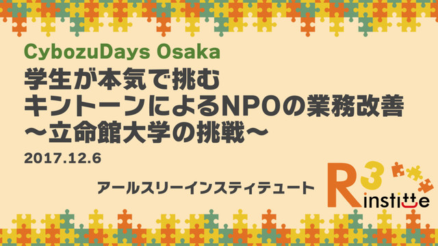 学生が本気で挑む キントーンによるNPOの業務改善 〜立命館大学の挑戦〜 CybozuDays Osaka アールスリーインスティテュート 2017.12.6