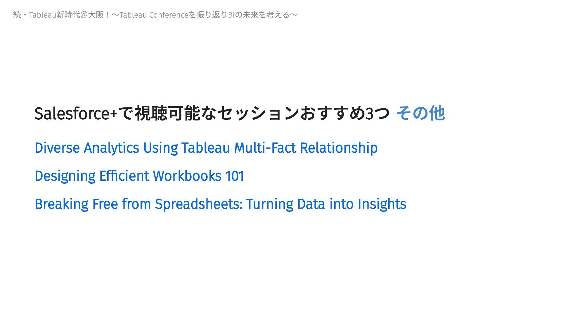 Salesforce+で視聴可能なセッションおすすめ3つ その他 Diverse Analytics Using Tableau Multi-Fact Relationship Designing Efficient