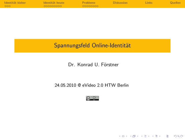 About this document Created in L ATEX using the beamer class, TeX Live and Emacs. The following software was used: http://www.latex-project.org http://latex-beamer.sourceforge.net http://www.tug.org/texlive/ http://www.gnu.org/software/emacs http://www.gimp.org/ http://www.inkscape.org/ Published under the Creative Commons Attribution 3.0 License http://creativecommons.org/licenses/by/3.0/ by Konrad F¨ orstner Document version 1.0 2010/05/24