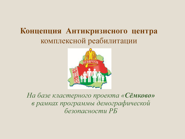 Концепция создания Антикризисного центра комплексной реабилитации на базе кластерного проекта «Сёмково» в рамках программы демографической безопасности РБ
