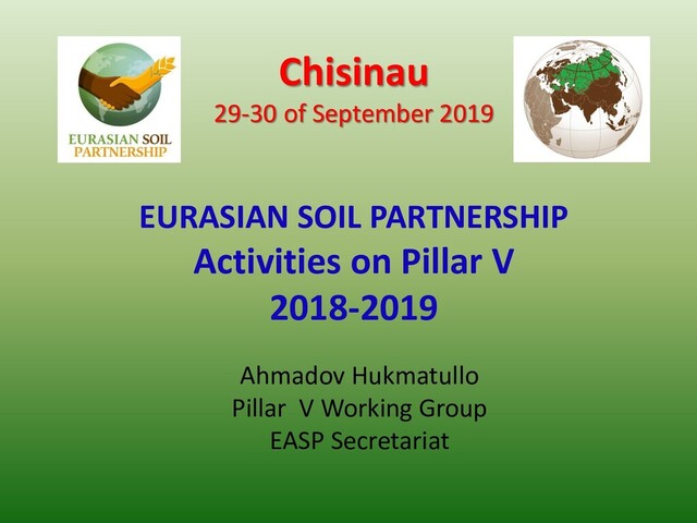 и охраны почвенных ресурсов Для преодоления трансграничной проблемы, глобальные и региональные почвенные партнерства предложить механизмы для разработки и обмена глобально согласованной и сопоставимой информации о почвах, используя данные о наблюдение и описание почвенного профиля, лабораторных и полевых аналитических данных, так и полученных на их основе продуктов. Гармонизация, которую можно рассматривать как очередной шаг к стандартизации, предоставляет возможности описания, отбора, классификации и анализа почвы таким образом, чтобы предоставить возможность использования результатов для дальнейших научных использований. EASP Plenary Assembly, Chisinau, September 2019