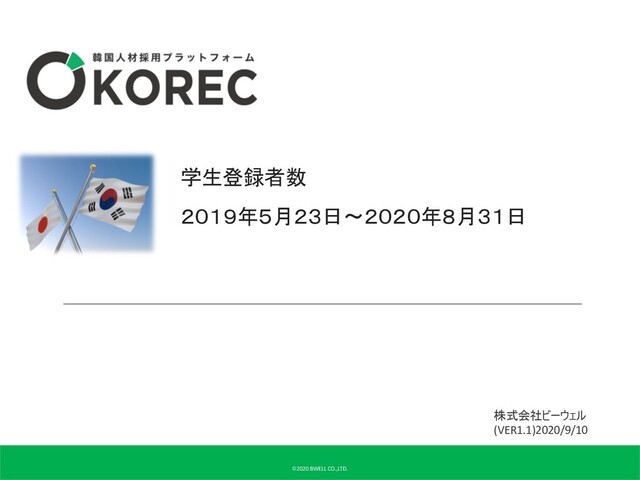 学生登録者数 2019年5月23日〜2020年8月31日 株式会社ビーウェル (VER1.1)2020/9/10 ©2020 BWELL CO.,LTD.