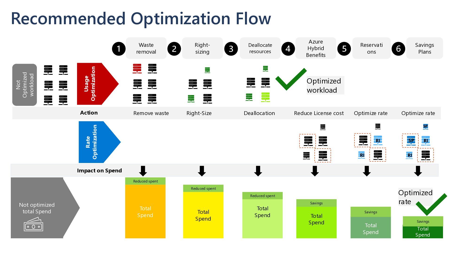 resources Right- sizing Azure Hybrid Benefits Usage Optimization Rate Optimization Remove waste Action Not optimized total Spend Total Spend Reduce License cost Optimize rate Total Spend Reduced spent Not Optimized workload Total Spend Right-Size Reduced spent Total Spend Reduced spent Savings Total Spend Savings Total Spend Savings Deallocation Impact on Spend Optimize rate Optimized workload Optimized rate RI RI SP SP RI RI