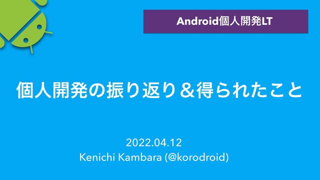 2022.04.12 Kenichi Kambara (@korodroid) Androidݸਓ։ൃLT ݸਓ։ൃͷৼΓฦΓˍಘΒΕͨ͜ͱ