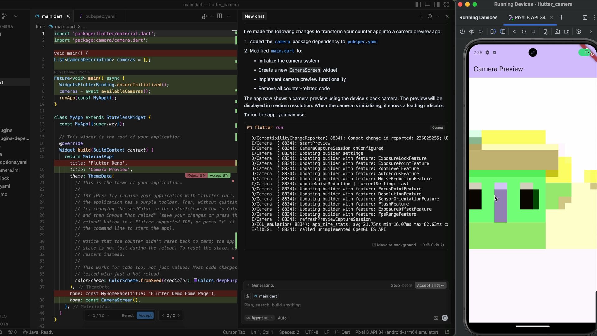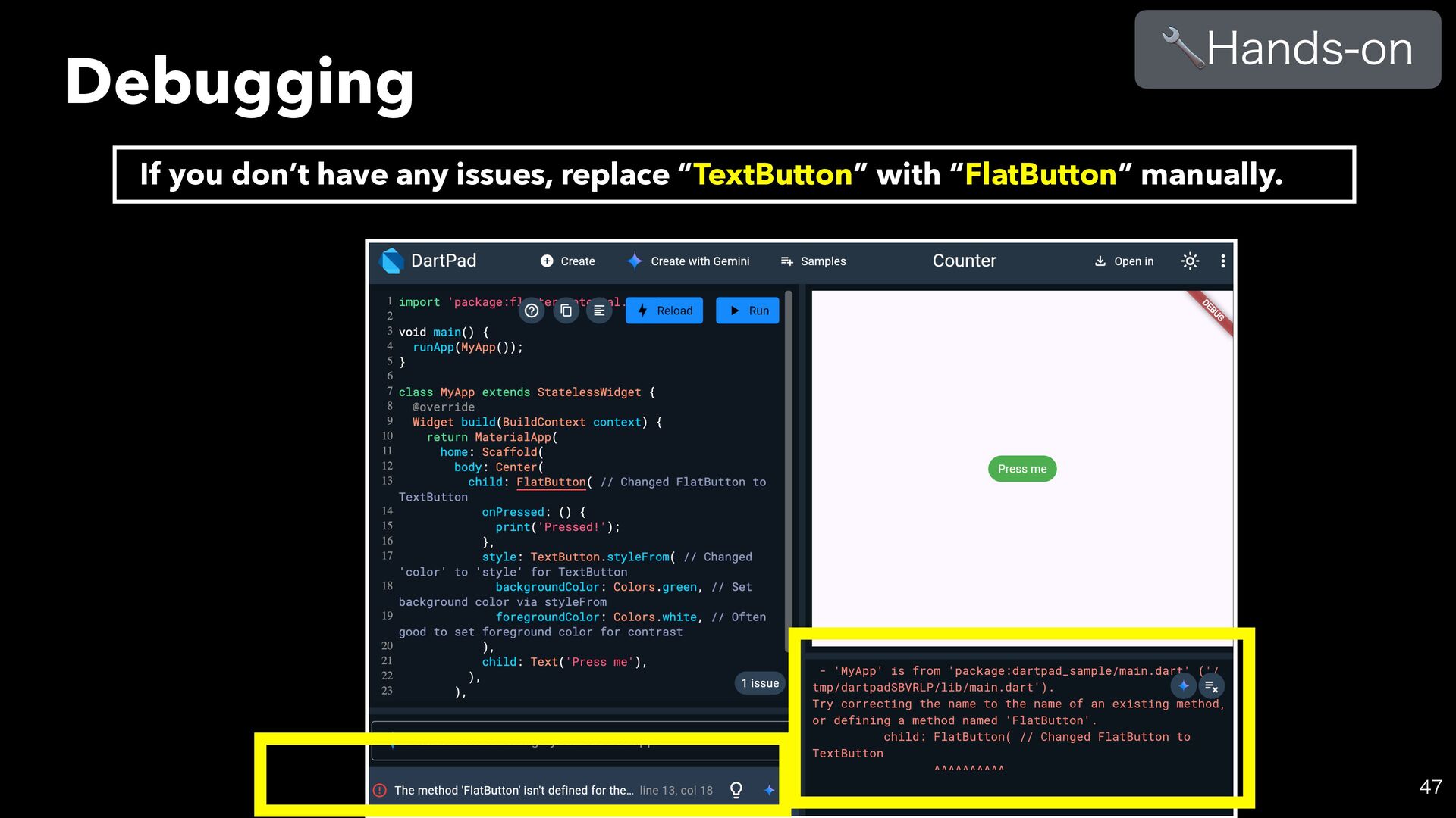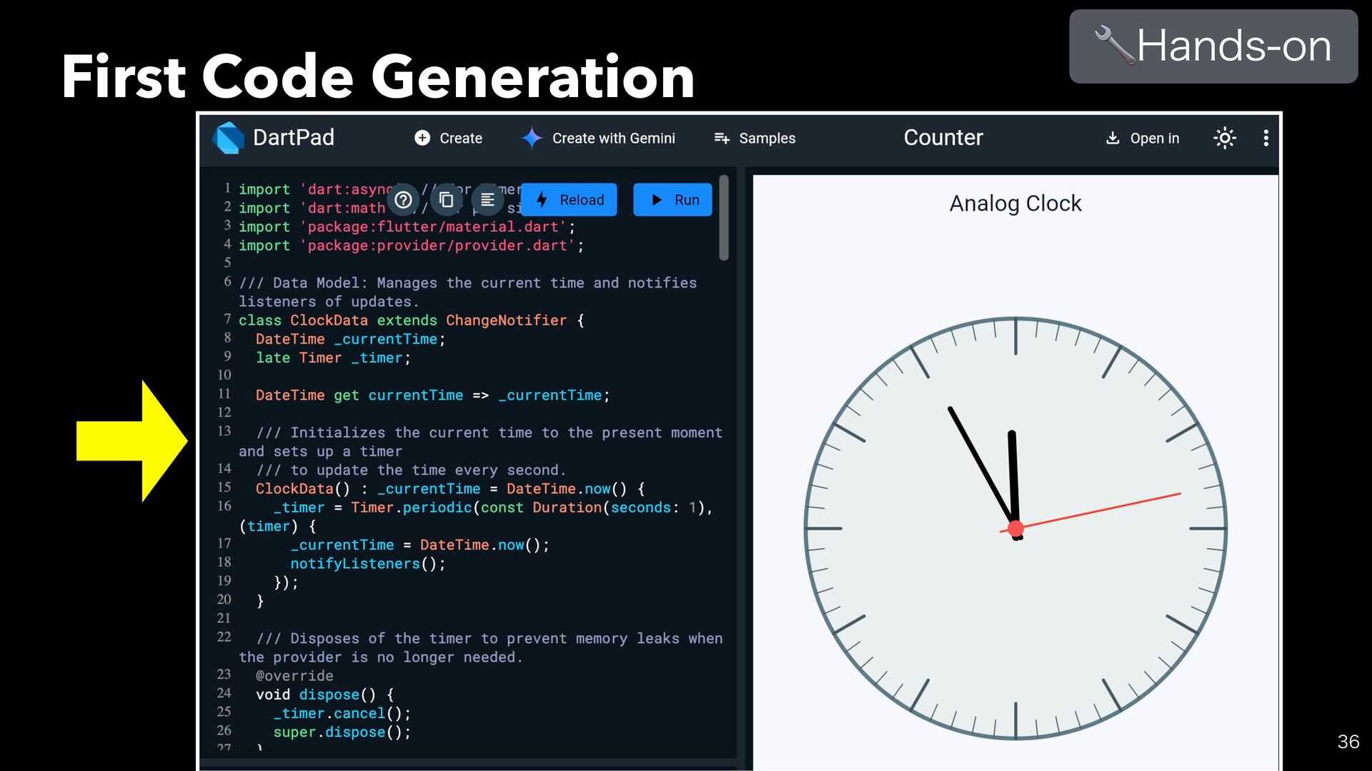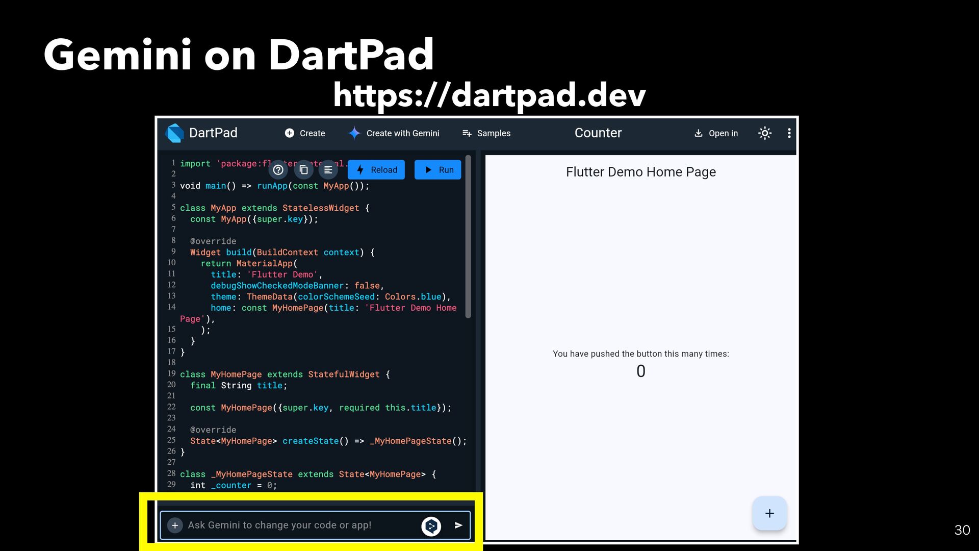 ɾGenerate UI and logic automatically Learn by building from code generation to testing ɾFix build errors with AI help ɾWrite and simulate widget tests 💻 Code Generation 💻 Debugging & Testing