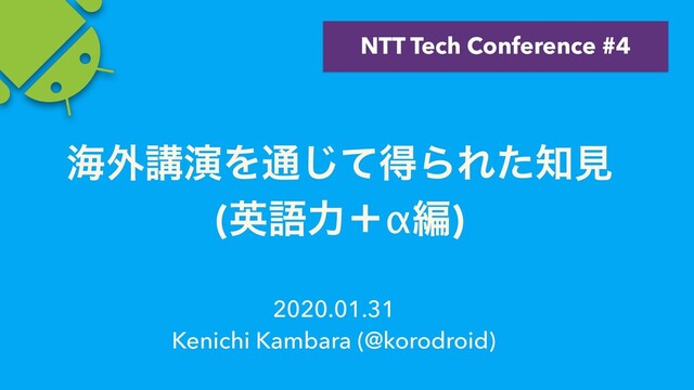 2020.01.31 Kenichi Kambara (@korodroid) ւ֎ߨԋΛ௨ͯ͡ಘΒΕͨݟ (ӳޠྗʴαฤ) NTT Tech Conference #4