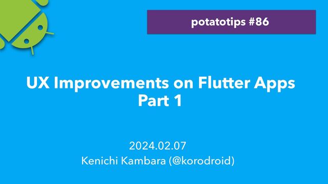 This is the slide, "UX Improvements on Flutter Apps Part 1" on potatotips 86. #flutter #flutterjp #potatotips