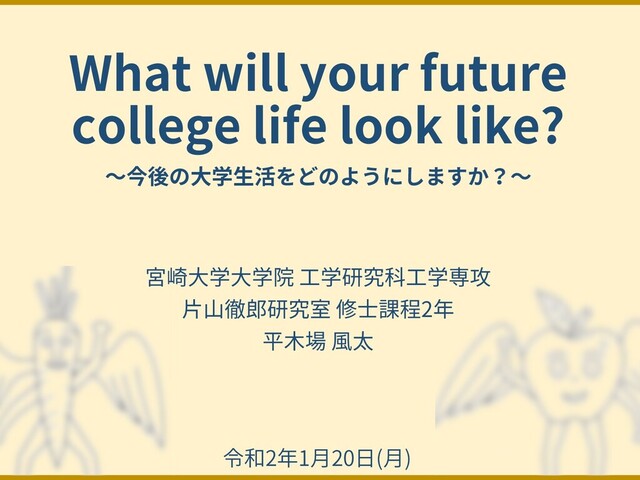What will your future college life look like? 〜今後の⼤学⽣活をどのようにしますか?〜 令和2年1⽉20⽇(⽉)