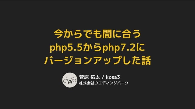 今からでも間に合う php5.5からphp7.2に バージョンアップした話 菅原 佑太 / kosa3 株式会社ウエディングパーク