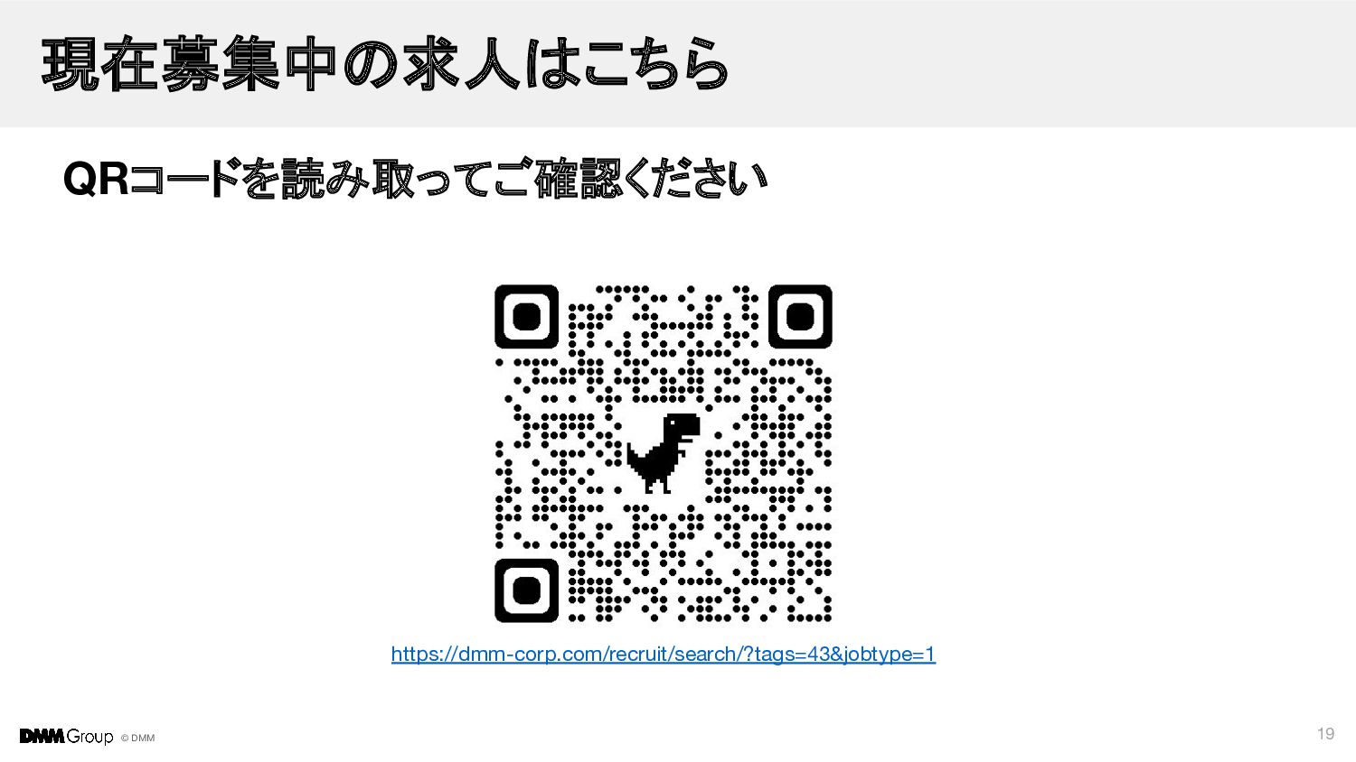 © DMM 現在募集中の求人はこちら 19 QRコードを読み取ってご確認ください https://dmm-corp.com/recruit/search/?tags=43&jobtype=1