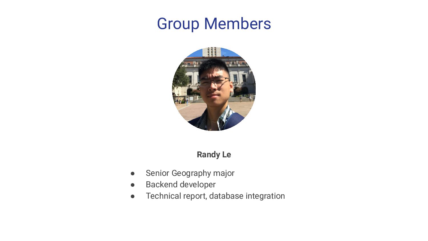 developer • API design, GCP manager, Pagination, phase 1 and 3 leader Barry Hill • Junior Mathematics major • Backend developer • API design, database population. Pagination