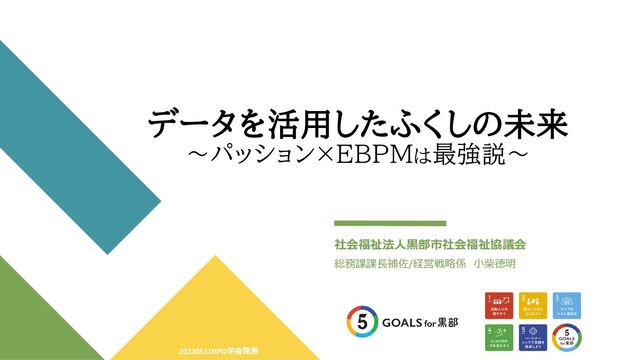 今回の本パネルでは、データをめぐる市民社会組織の役割として、既存データの解釈や可視化による市民参加の促進という昨年の議論を一歩進めて、市民社会組織による、当事者発のデータ・指標づくりについて、その意義や可能性について考えてみたい。